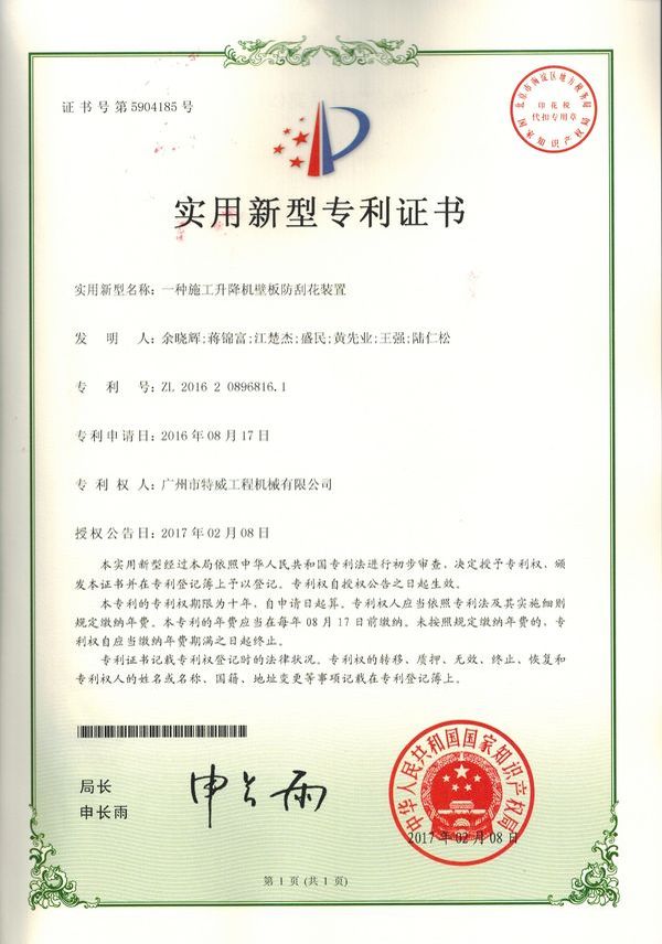 廣州市特威工程機(jī)械有限公司地處廣州市白云區(qū)神山鎮(zhèn),廣清高速神山出口附近,是一家施工升降機(jī)的專業(yè)生產(chǎn)廠家。公司成立于2011年,占地100000多平方米,注冊(cè)資金1060萬(wàn)元,現(xiàn)有員工300余人其中工程技術(shù)人員33人,高級(jí)技術(shù)人員52人。
